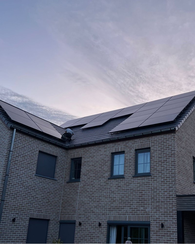 Cette maison a accueilli 28 panneaux solaires Trina Solar 415 Full Black. L'électricité des panneaux photovoltaïques est convertie en courant alternatif par des onduleurs SMA. La puissance installée est de 11.620 Wc et sert à couvrir la consommation du ménage.