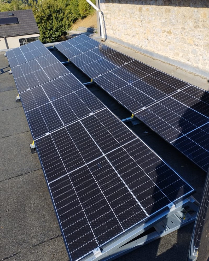Nous avons installé 8 panneaux Trina Solar ainsi qu'un onduleur SMA à Gomzé.