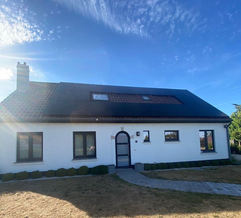 Cette maison a accueilli 22 panneaux solaires Hyundai 400W Full Black Shingled. L'électricité des panneaux photovoltaïques est convertie en courant alternatif par des onduleurs SMA. La puissance installée est de 8800 Wc et sert à couvrir la consommation du ménage.