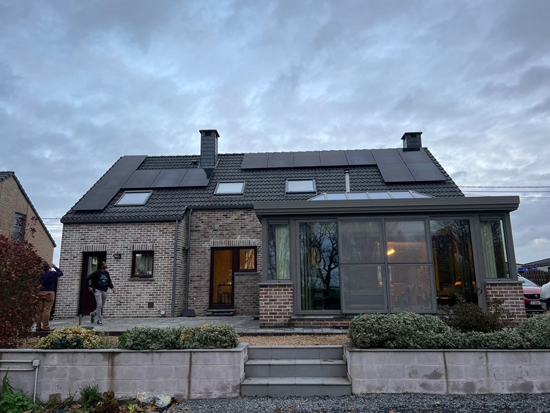 Cette maison a accueilli 15 panneaux solaires Trina Solar 420 Full Black Third Cut. L'électricité des panneaux photovoltaïques est convertie en courant alternatif par des onduleurs Huawei. La puissance installée est de 6.300 Wc et sert à couvrir la consommation du ménage.