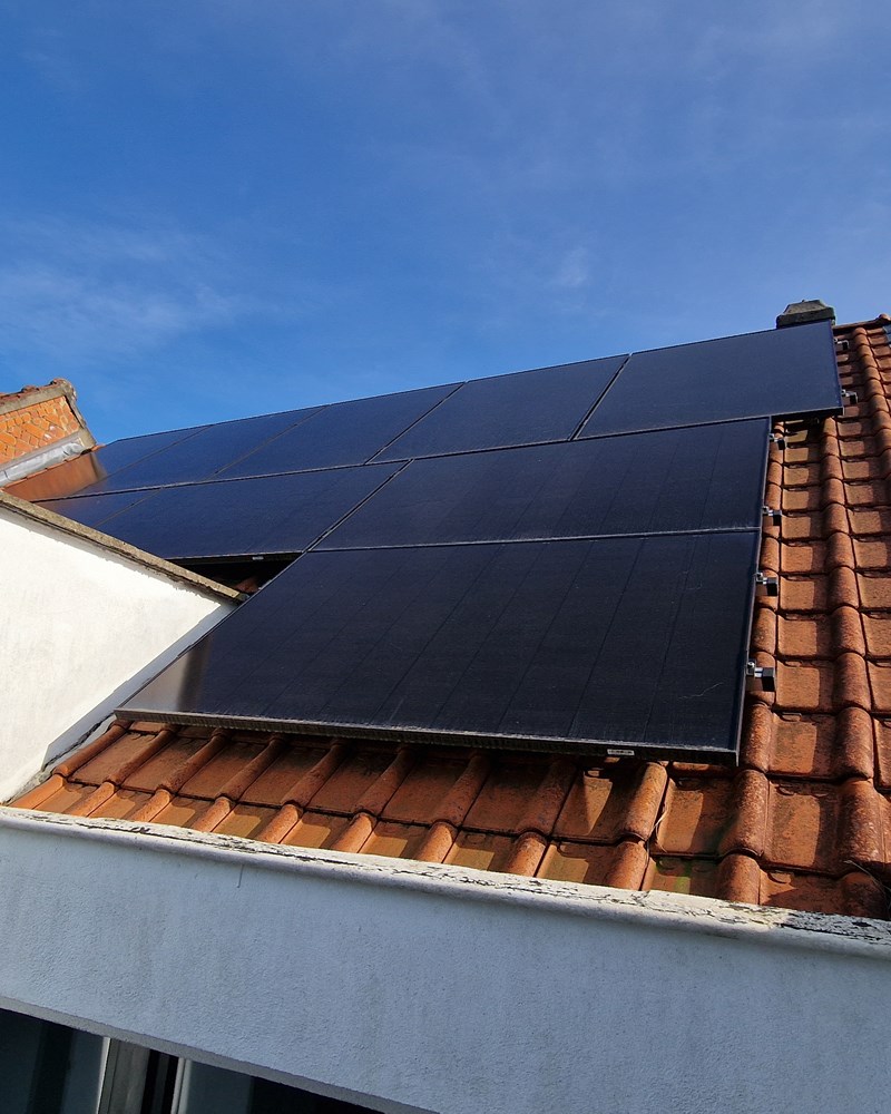 Installation de 6 panneaux Trina Solar 450W Full Black Dual Glass sur toiture plate à 1180 Uccle, avec batterie de stockage.