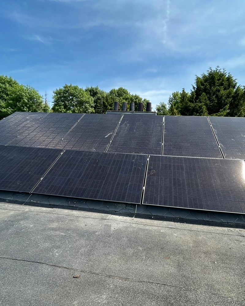 Installation de 14 panneaux Trina Solar 445 Full Black Dual Glass sur le toit d'une habitation à 4400 Flémalle, avec un onduleur Huawei SUN2000-4KTL triphasé.