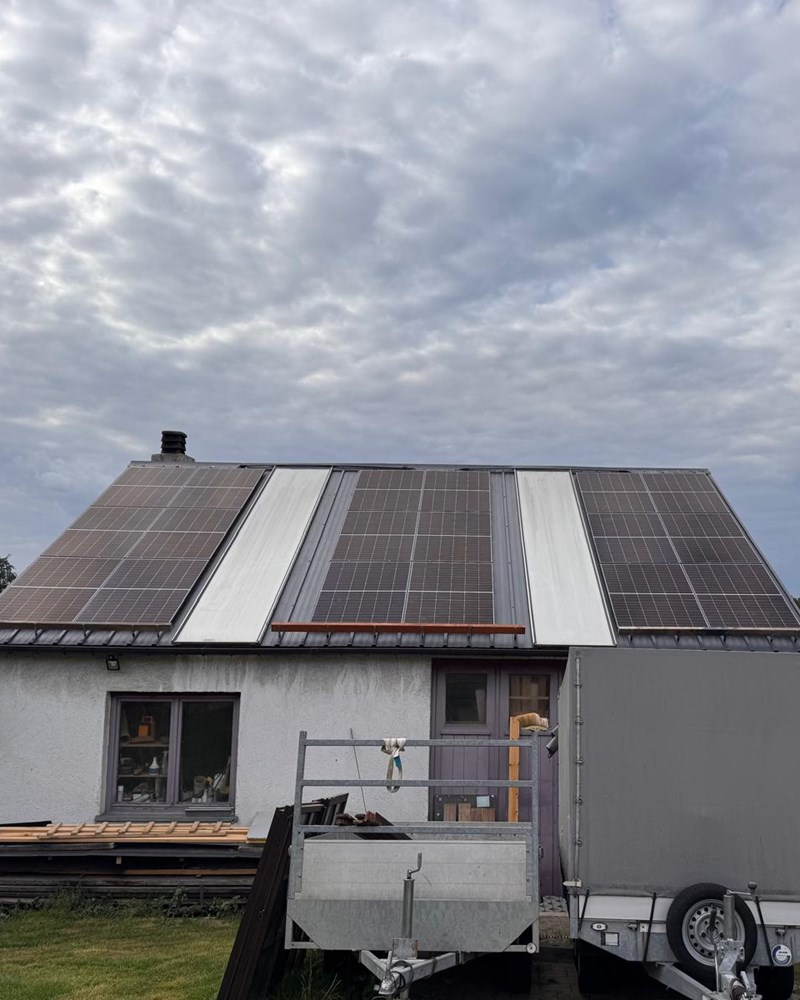 Nous avons installé 18 panneaux solaires Trina Solar ainsi qu'un système de stockage complet avec onduleur Huawei à Housse.