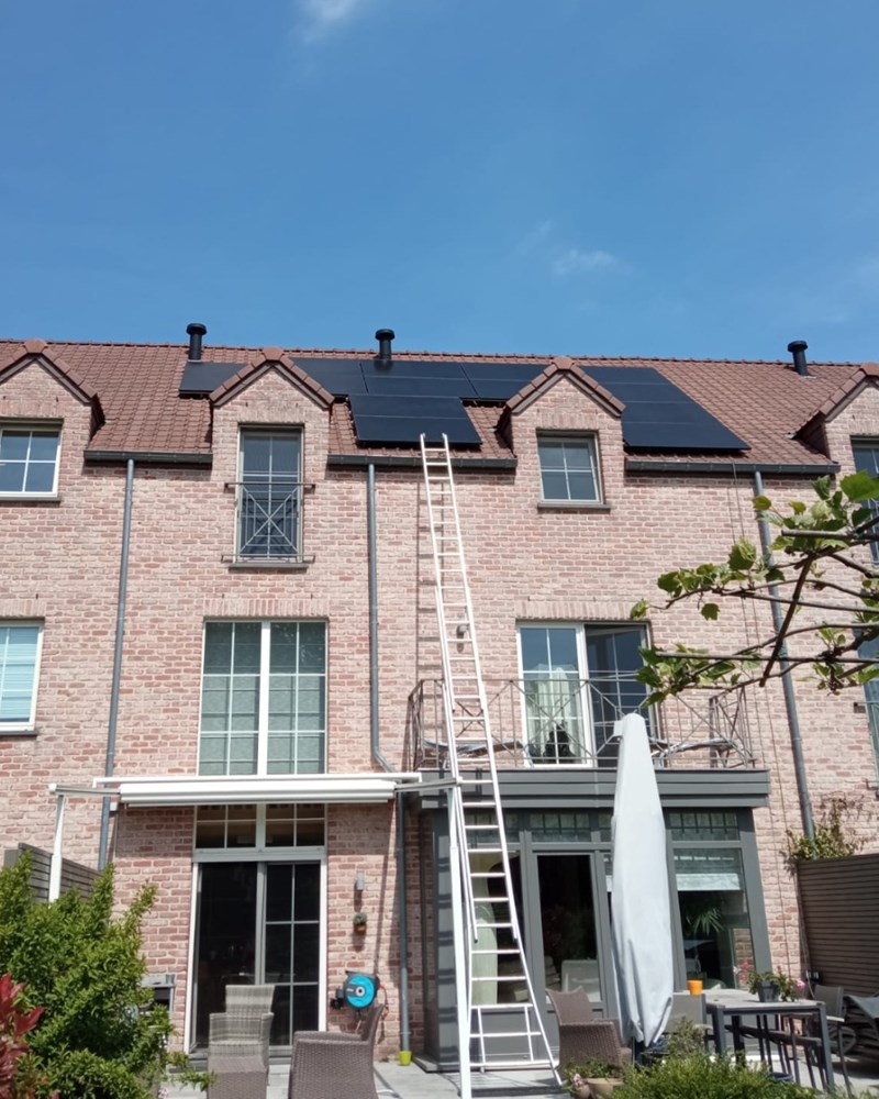 Cette maison neuve a accueilli 14 panneaux solaires Hyundai 400w Ultra Full Black Shingled. L'électricité des panneaux photovoltaïques est convertie en courant alternatif par des onduleurs SMA. La puissance installée est de 5.600 Wc et sert à couvrir la consommation du ménage.