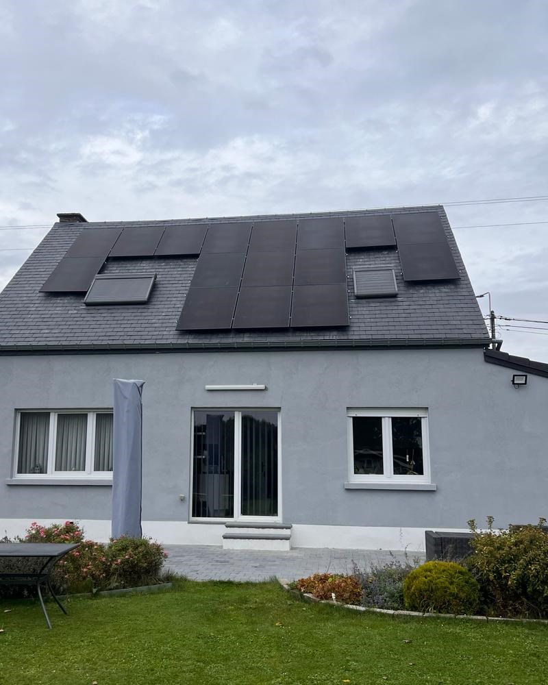 Cette maison a accueilli 16 panneaux solaires Trina Solar 415 Full Black. L'électricité des panneaux photovoltaïques est convertie en courant alternatif par des onduleurs Huawei. La puissance installée est de 6640 Wc et sert à couvrir la consommation du ménage.