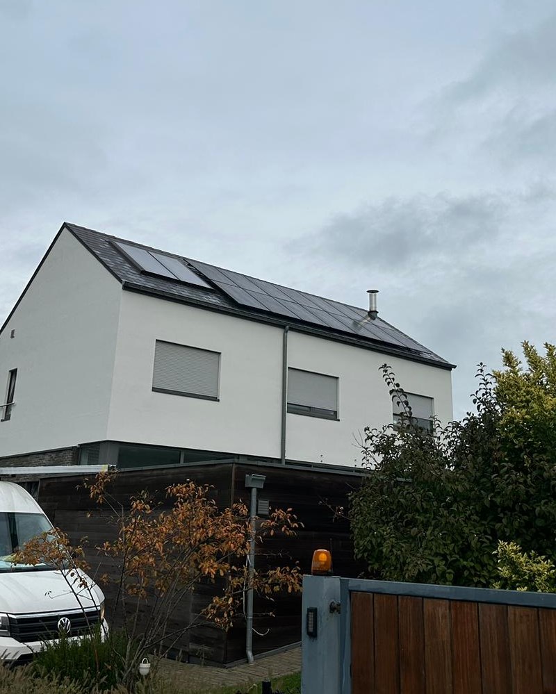 Cette maison a accueilli 14 panneaux solaires Trina Solar 415 Full Black. L'électricité des panneaux photovoltaïques est convertie en courant alternatif par des onduleurs Huawei. La puissance installée est de 5810 Wc et sert à couvrir la consommation du ménage.