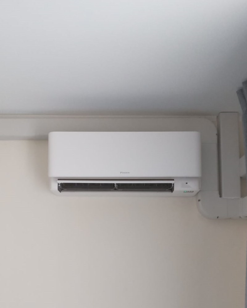 Installatie van een Daikin airconditioningsysteem bestaande uit een stijlvolle binnenunit en een warmtepomp buitenunit in een woning gelegen te 4032 Chênée.