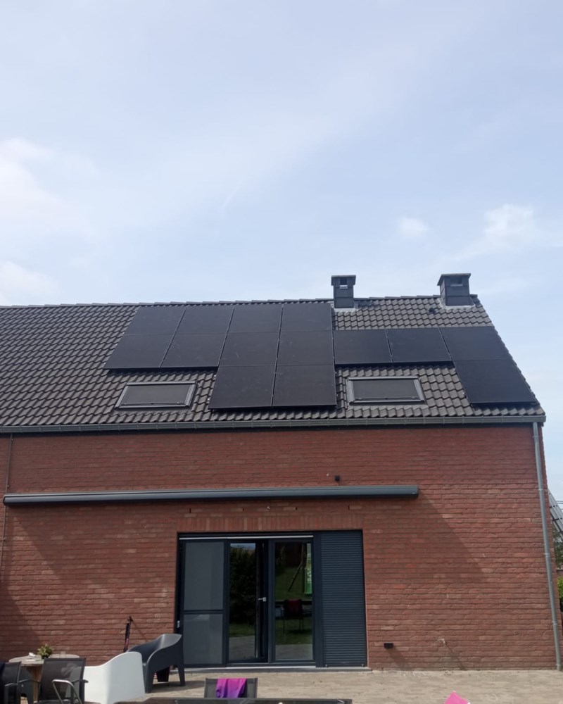 In deze nieuwbouw werden 14 Hyundai 400 Wp Full Black Shingled-zonnepanelen ondergebracht. Om de elektriciteit van deze installatie om te zetten naar wisselstroom plaatsten we een SMA-omvormer.