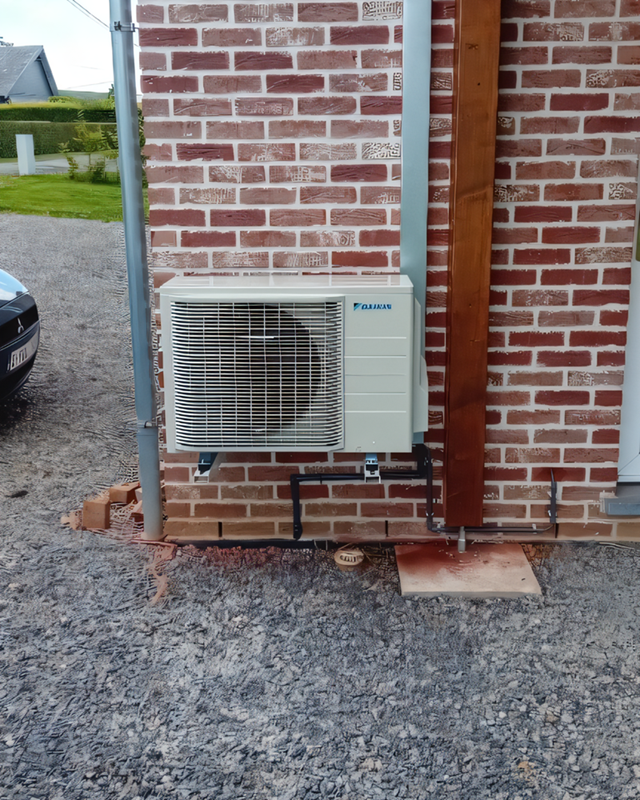 Installatie van een binnenunit en een buitenunit van Daikin in een woning te 4920 Harzé.